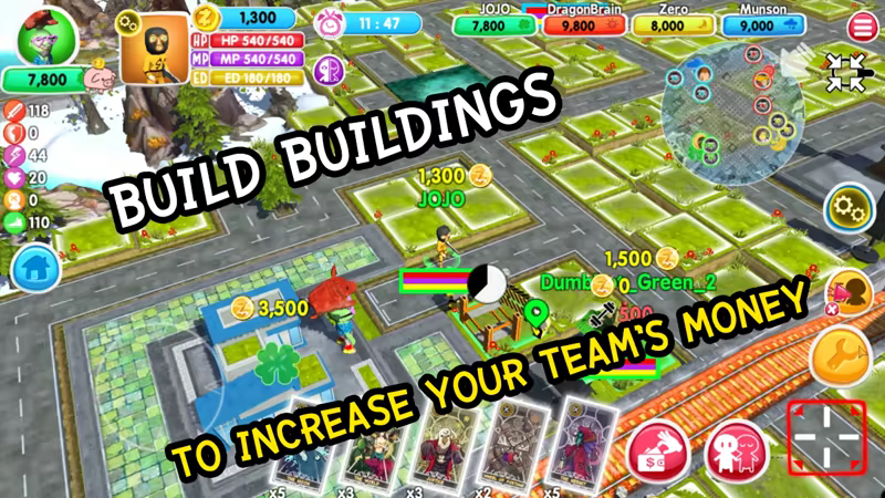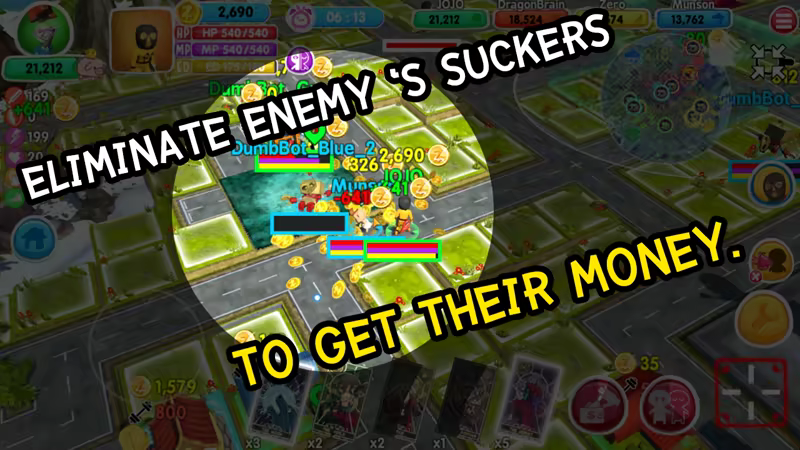 Ennennäkemätön Moba-peli, joka voi kilpailla neljässä joukkueessa. (3v3v3v3) tee kaikkesi tullaksesi rikkaammaksi kuin kilpailijasi. Rentoudu monien minipelien parissa, joita voit pelata ja nauraa 8 ystävän kanssa samanaikaisesti.