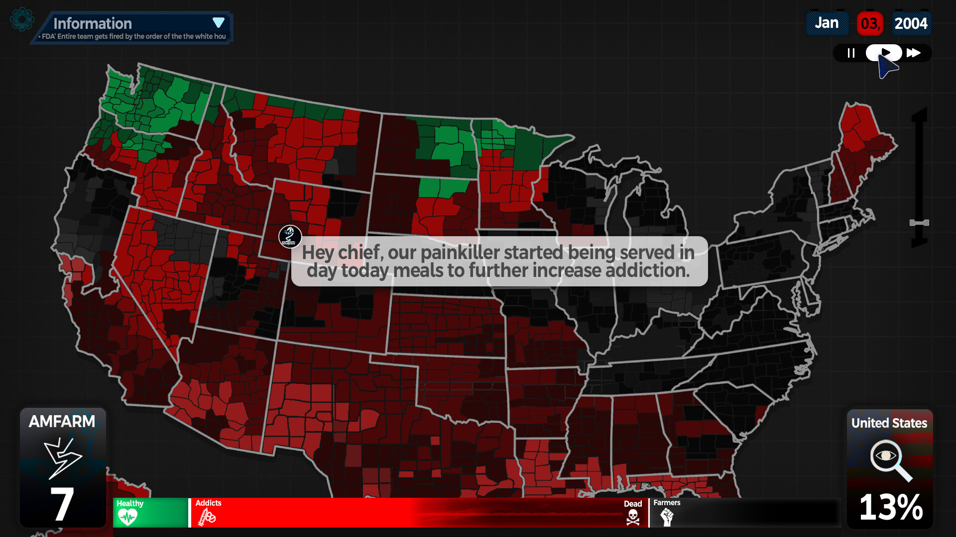 Lead the board of the newly created opioid by your pharma company to supply it to every household in the United States as per their needs, which you have to create (sometimes). Your final aim is to create a pharma theocracy out of this great nation now called the superstate of America. Inspired by the Great American Opioid Crisis, set from the early 90s to the late 2000s.
