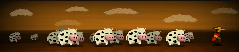 In "Vaca Bullet" you will step into the shoes of a cowboy in the Wild West, who must defend his vacas(cows) from the dreaded bullets of bandits trying to steal them. This game is a tribute to those "Western" movies, full of shootouts and chases, all achieved through beautiful pixel art that seeks to give it a raw and unique essence like a true western.