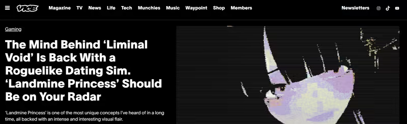 Meet Mina! She's a landmine girl! That means she's cute on the outside, but dangerous on the inside! But maybe she's the kind of danger you've always been looking for. This is a rogue fast-love dating sim. And the only sim that teaches you to be nice to girls. Or else.