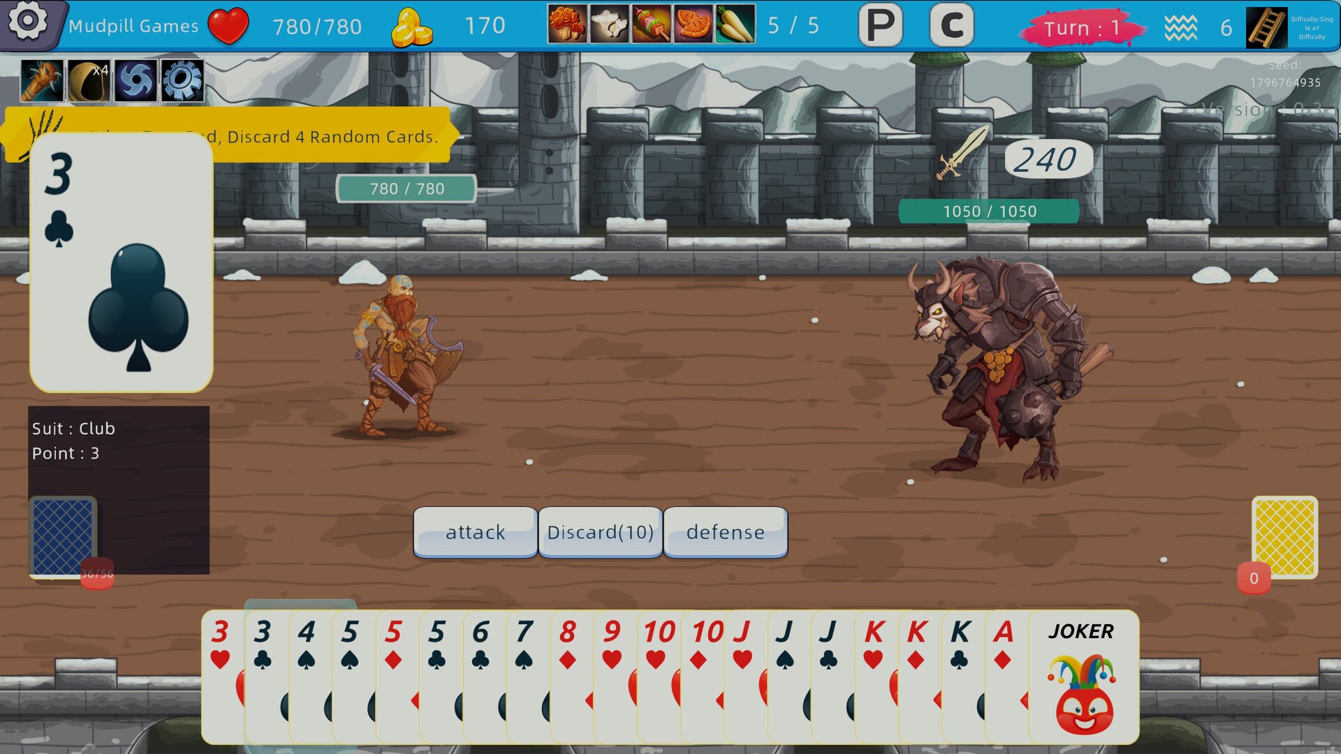 다양한 직업의 다양한 기술을 플레잉 카드와 함께 사용하여 다양한 기술로 적을 물리치세요.