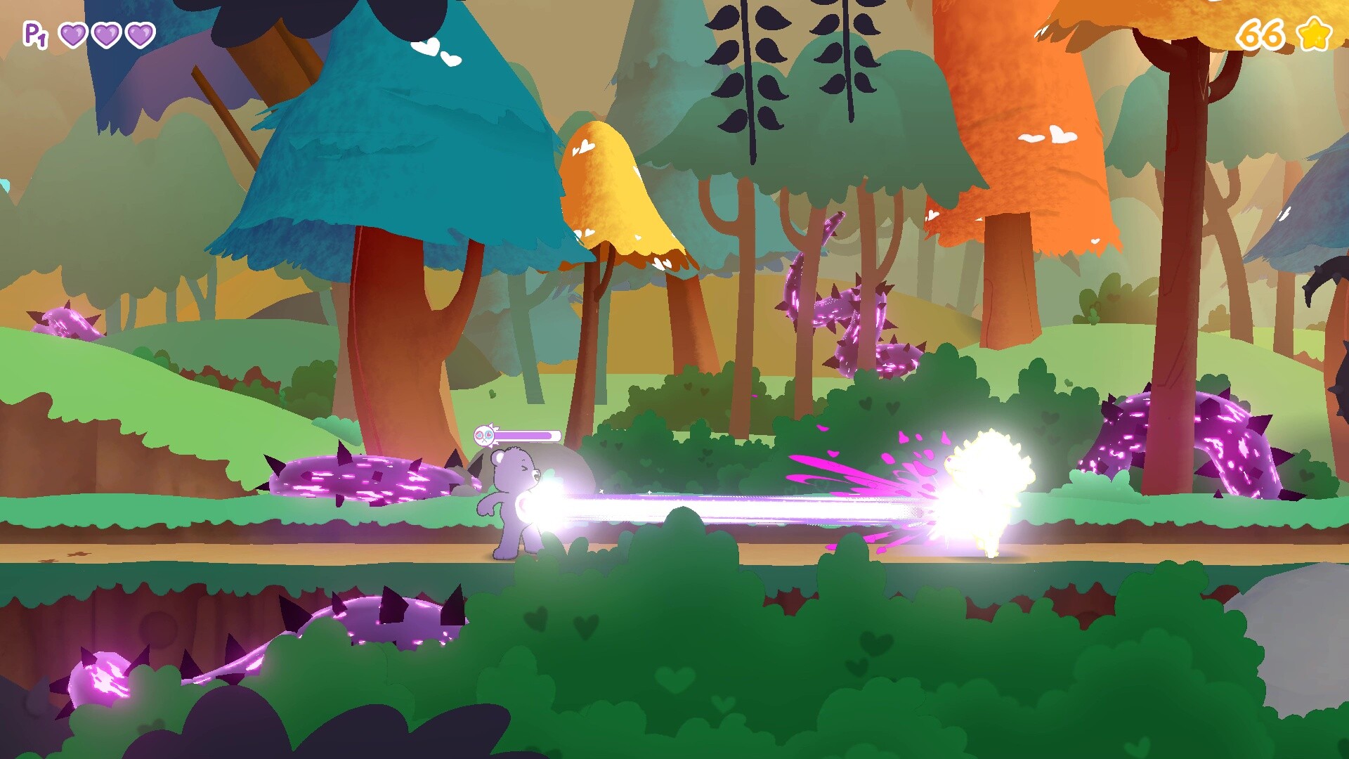 • Cooperating with fellow Care Bears to help each other overcome the giant Bad Seed’s continuous attempts at stopping your progression
