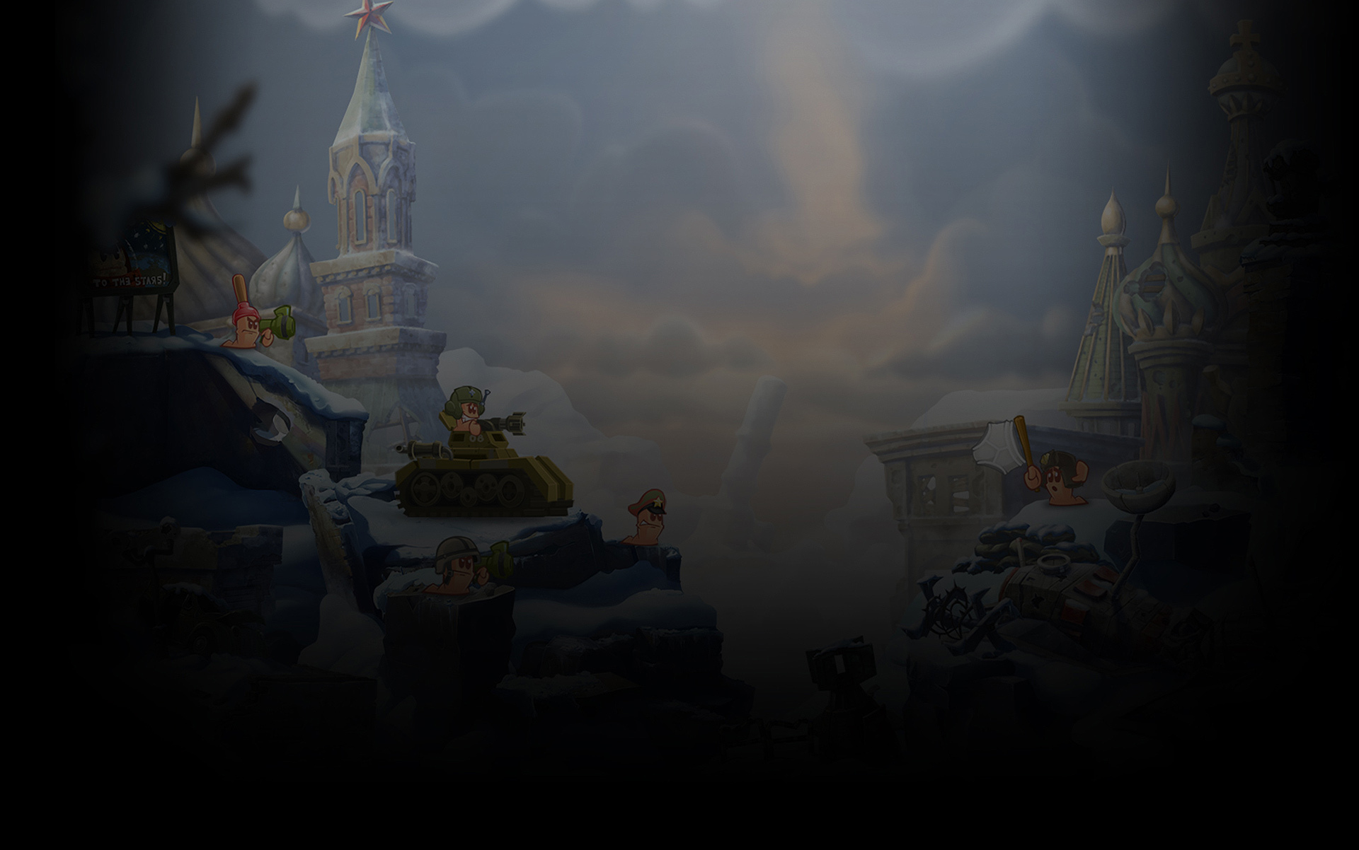 • Gebäude: Sichere dir den taktischen Vorteil, indem du deine Würmer in Gebäuden Deckung suchen lässt und sie so vor direkten Angriffen schützt!