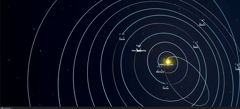 The game contains the entire solar system, processed to the smallest detail. Use the mutual gravity of the bodies to travel and save precious fuel to travel between bases.