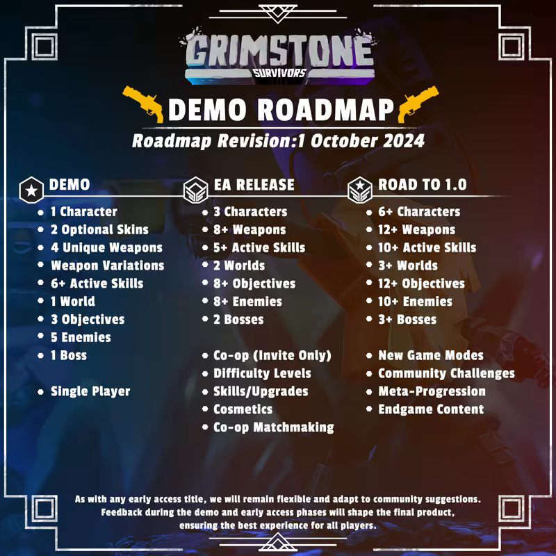 Grimstone Survivors is a 3D roguelite offering endless playability! The demo will consist of 10-15 levels, and we will continue development with your feedback. New updates are on the way! If you enjoy our game, feel free to join our Discord channel and share your thoughts. And don't forget to add it to your wishlist!