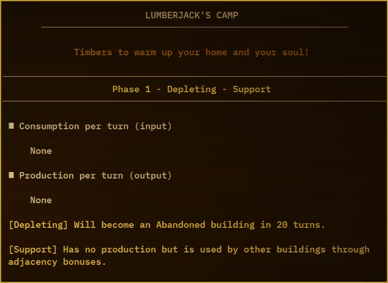 Every aspect of RoH is meticulously crafted to capture the intricacies of a developing colony. As a text-based game, RoH leaves ample room for imagination, unlike graphical games that must visually depict rules and mechanics. RoH distils the essence of city-builders and strategy games into abstract concepts, enabling unique and innovative gameplay combinations.