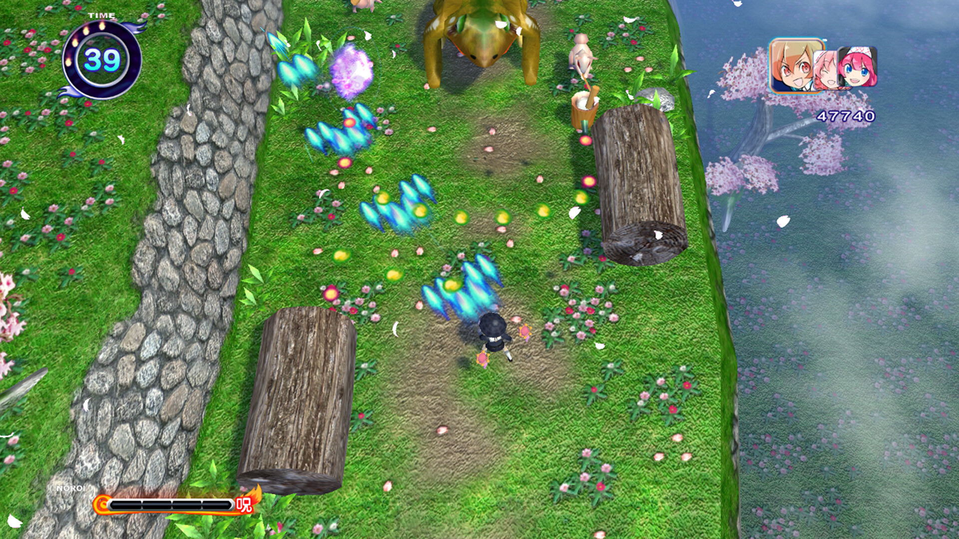 呪われた敵はダメージを食らい続ける。倒せば得点アイテムが大量発生!