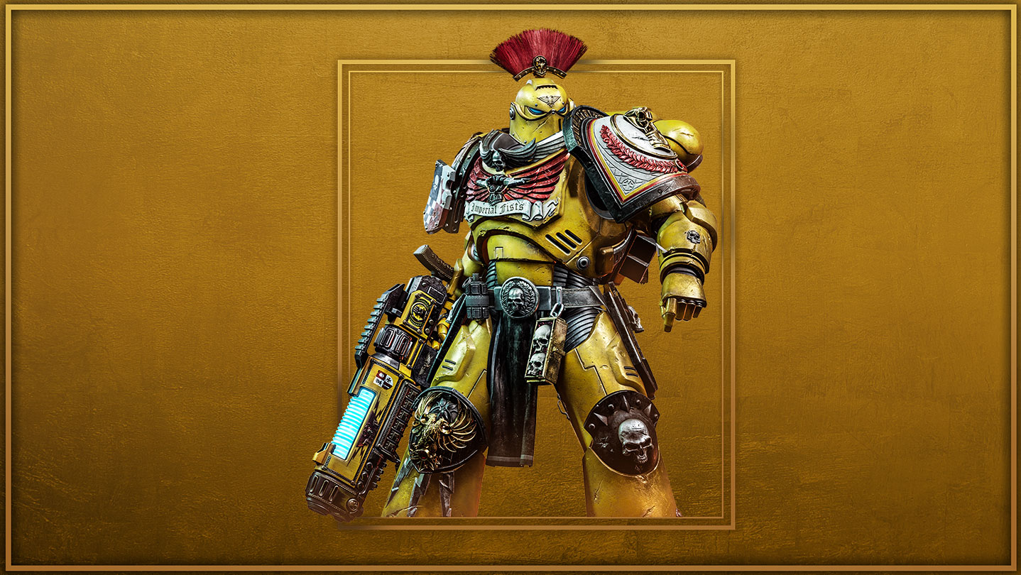 Honour your Chapter's proud martial heritage with the Imperial Fists Champion Pack, granting you a unique full-body Power Armour skin for the Tactical class and a Plasma Incinerator skin featuring the colours and iconography of Rogal Dorn’s sons.