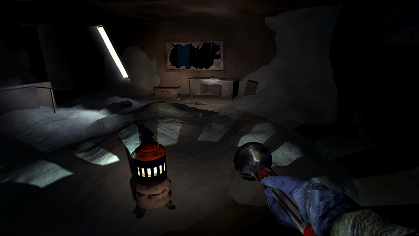 • A real-time temperature simulation that freezes and thaws the environment room by room based on exposure to the elements, building layouts, the base’s power system, and your own ability to establish safe areas with makeshift repairs.
