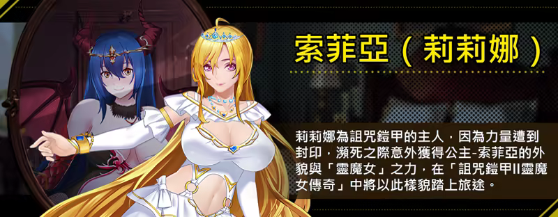 紳士向名作《詛咒鎧甲》的正統續作——經典RPG冒險結合變身系統,搭配大量H事件差分、蕩氣迴腸的主線劇情與豐富支線、高自由度玩法。延續初代劇情,莉莉娜意外獲得靈魔女之力,再次踏上冒險之旅。