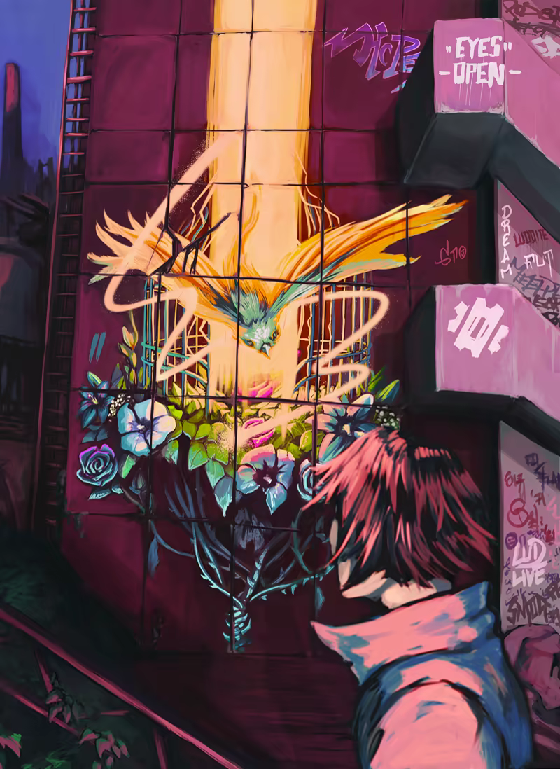 Enter Yurushi, a sprawling Metropolis and Earth’s largest city. You play as a young engineer who has recently been laid off by the Niven Megacorporation. Like many millions of others, this means a move back to the Saitama Slums, a vast wasteland, populated by the new ‘useless classes’ made unemployable by the adoption of artificial intelligence powered automata. You are recruited by the charismatic leader Red Ludd who is assembling a resistance to this mass obsolescence, a group known simply as the Luddites.