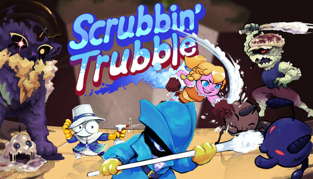 Scrubbin' Trubble is a cooperative roguelike where you go solo or team up with up to four players in online multiplayer to slash, smash, and scrub your way through dangerously dirty stages. Use strategy and teamwork to clean up Nasties, and take down the Four Filths of the Apocalypse.