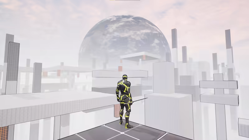 • Celestial Trial (Advanced Tutorial): Learn advanced mechanics such as using your grapple as a slingshot to launch you across the map. Rapidly retry platforming challenges similar to Celeste. Access the Celestial Trial by using your jetpack to get the tower at the far back end of the tutorial (near the tutorial completion portal!)