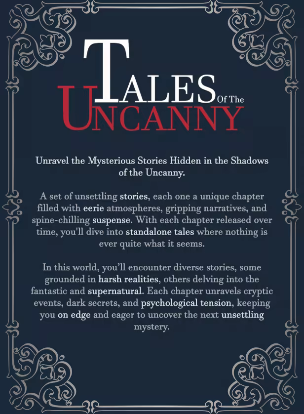 A horror game featuring standalone stories filled with eerie atmospheres and unsettling mysteries. Each chapter reveals a new, chilling narrative where your choices shape the outcomes. Dive into the unknown and embrace the uncanny.