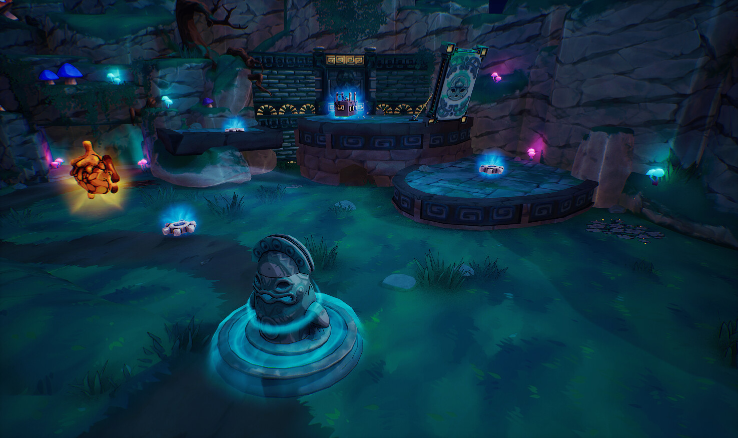 Protect the frog-ish moais as they purify the world. No pressure. Just the fate of everything.