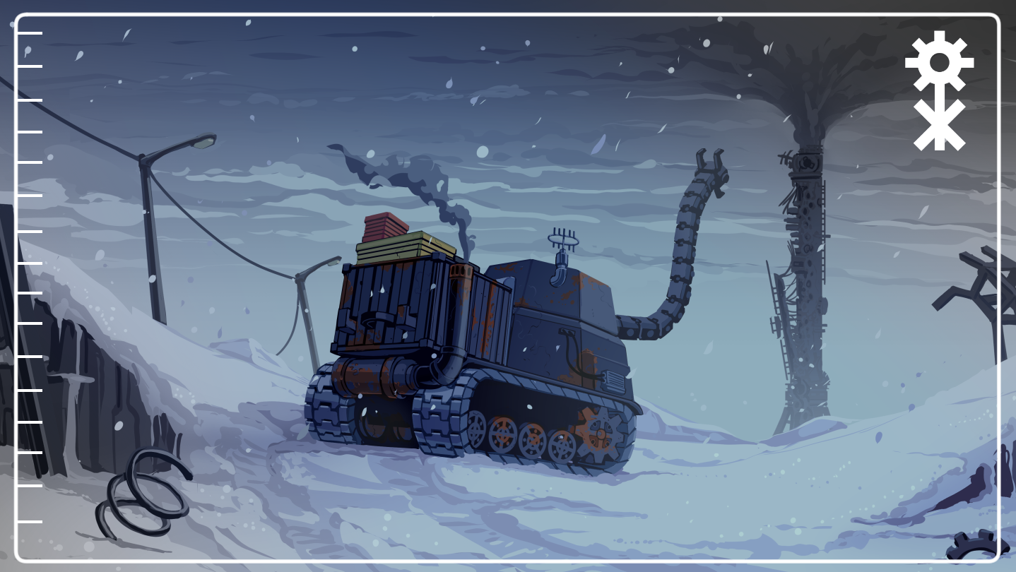 A delivery exploration game set in a snowy wasteland. With your tank's storage bucket & claw arm, you must collect and sell junk, make deliveries between settlements, and buy upgrades. The world is treacherous. Care must be taken to keep packages (and yourself) in good condition.