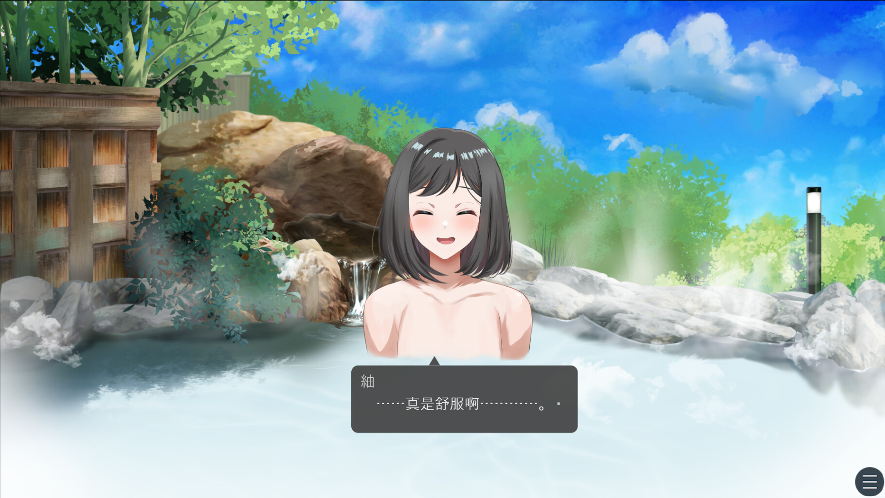 ・本作的画面主要由女性泡在温泉中泡澡的画面构成,虽然角色并未穿着衣物,但敏感部位皆被温泉水遮掩,并无过度裸露或色情描写。