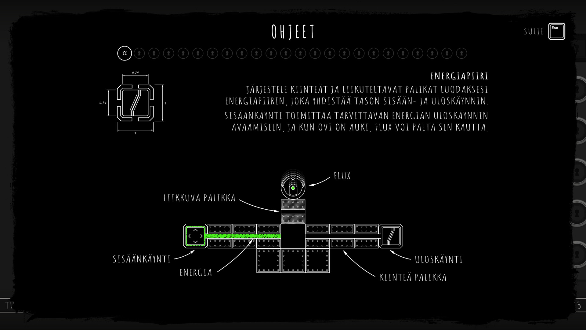 Auta robotti-imuri Fluxia pakenemaan jokaiselta tasolta luomalla energiapiiri, joka avaa uloskäynnin. Tehtävä saattaa vaikuttaa yksinkertaiselta, mutta pulmien monimutkaisuus testaa avaruudellista hahmotuskykyäsi, abstraktia ajatteluasi ja analyyttisiä taitojasi äärimmilleen.