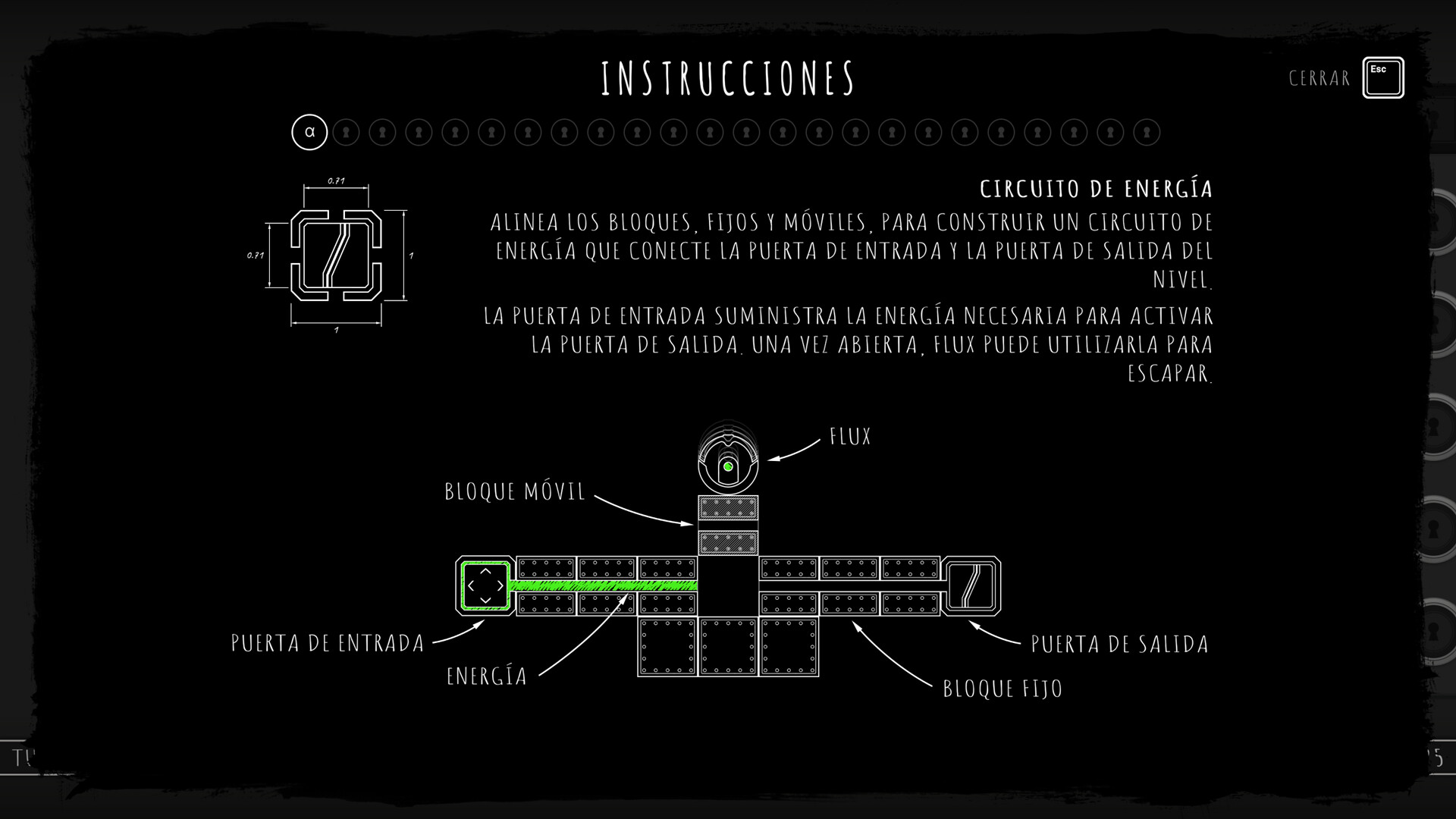 Ayuda a Flux, un robot aspirador, a escapar de cada nivel recolocando los bloques hasta formar un circuito que alimente la salida. La misión parece sencilla, pero la complejidad de los puzles pondrá al límite tu razonamiento espacial, tu capacidad analítica y tu pensamiento abstracto.