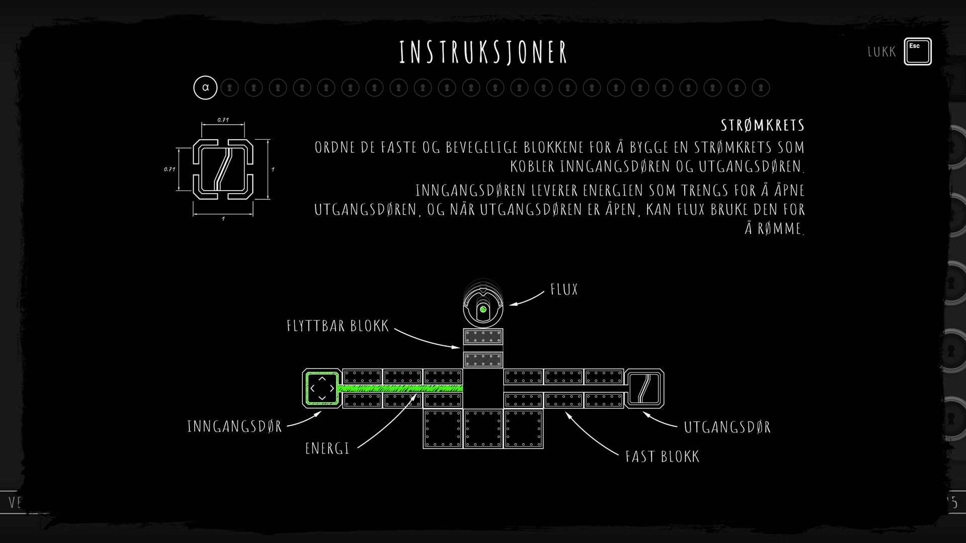 Hjelp robotstøvsugeren Flux å rømme fra hvert nivå – ved å bygge energikretsen som driver utgangsdøren. Oppdraget kan virke enkelt, men kompleksiteten i puslespillene setter din romforståelse, abstrakte tenkning og analytiske ferdigheter på prøve.