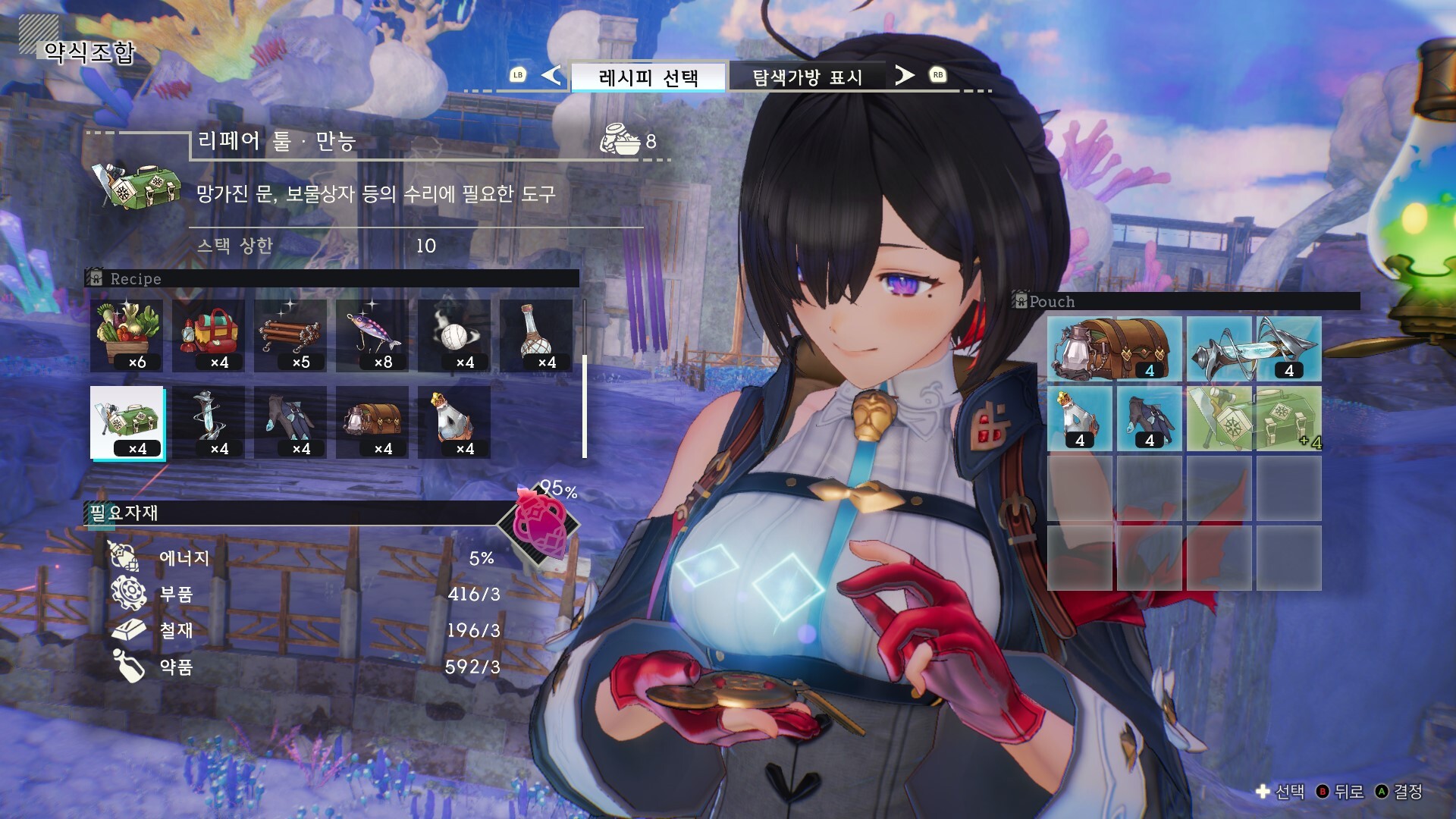 ※레시피는 조합 해금 후 또는 레시피 상기대 설치 후, 설계도는 하우징 해금 후, BGM 팩은 특정 인테리어 설치 후에 확인할 수 있습니다.