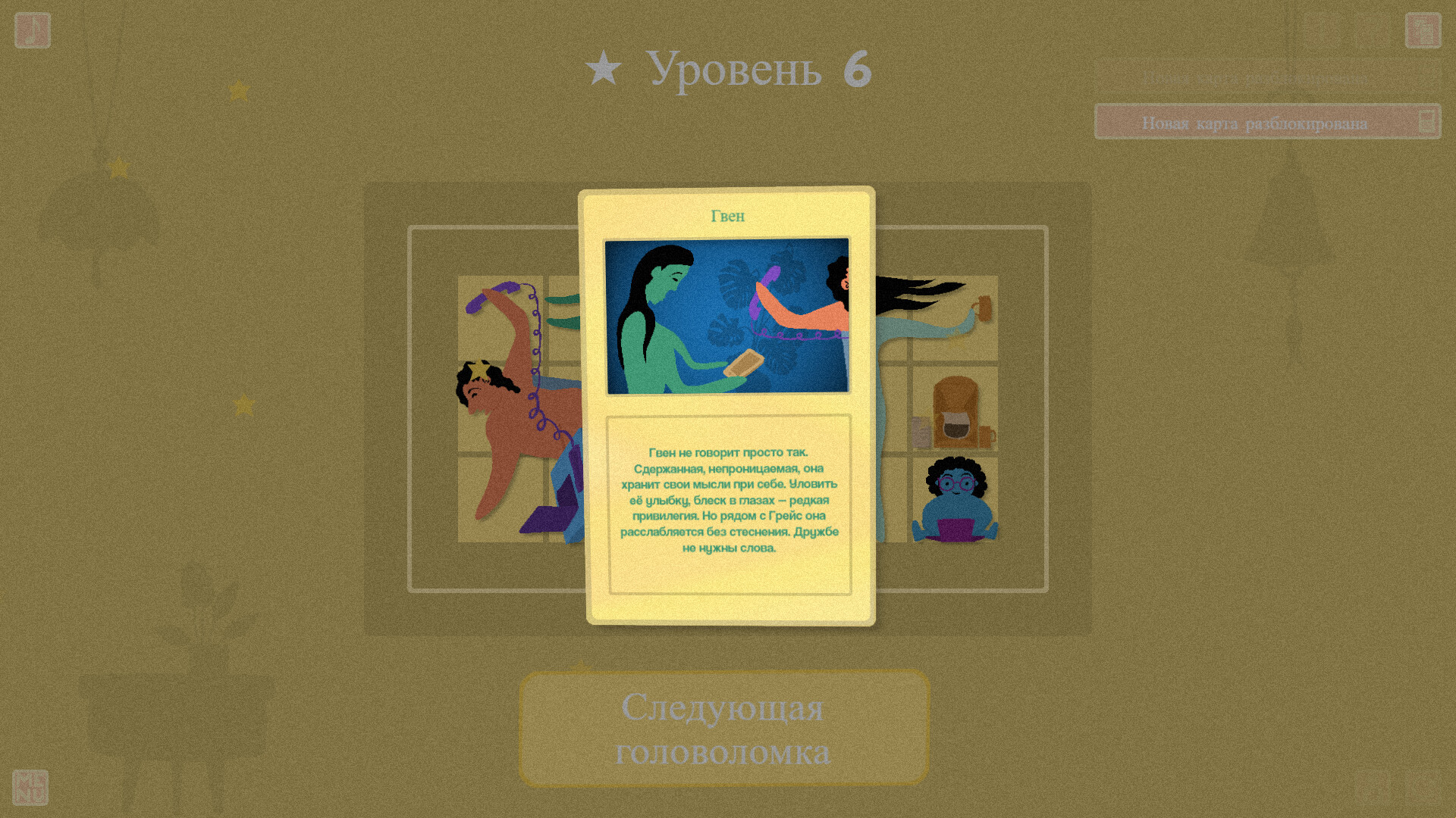 История рассказывается не только через головоломки, но и с помощью более чем 70 карточек, которые можно разблокировать и собрать!