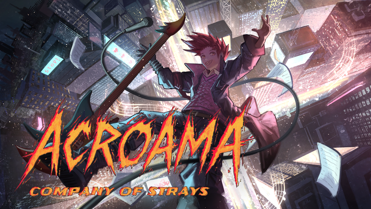 Acroama: Company of Strays is a music-themed, single-player card battler where you battle your way to stardom in a hectic Battle of the Bands competition. Live vicariously through wannabe punk-rocker Ash Blaze as he ditches his dead-end job and pursues a life of rockin’ tunes and wild adventures – including more than a few mornings waking up on the roof of the local pub in nothing but his underwear and left boot.