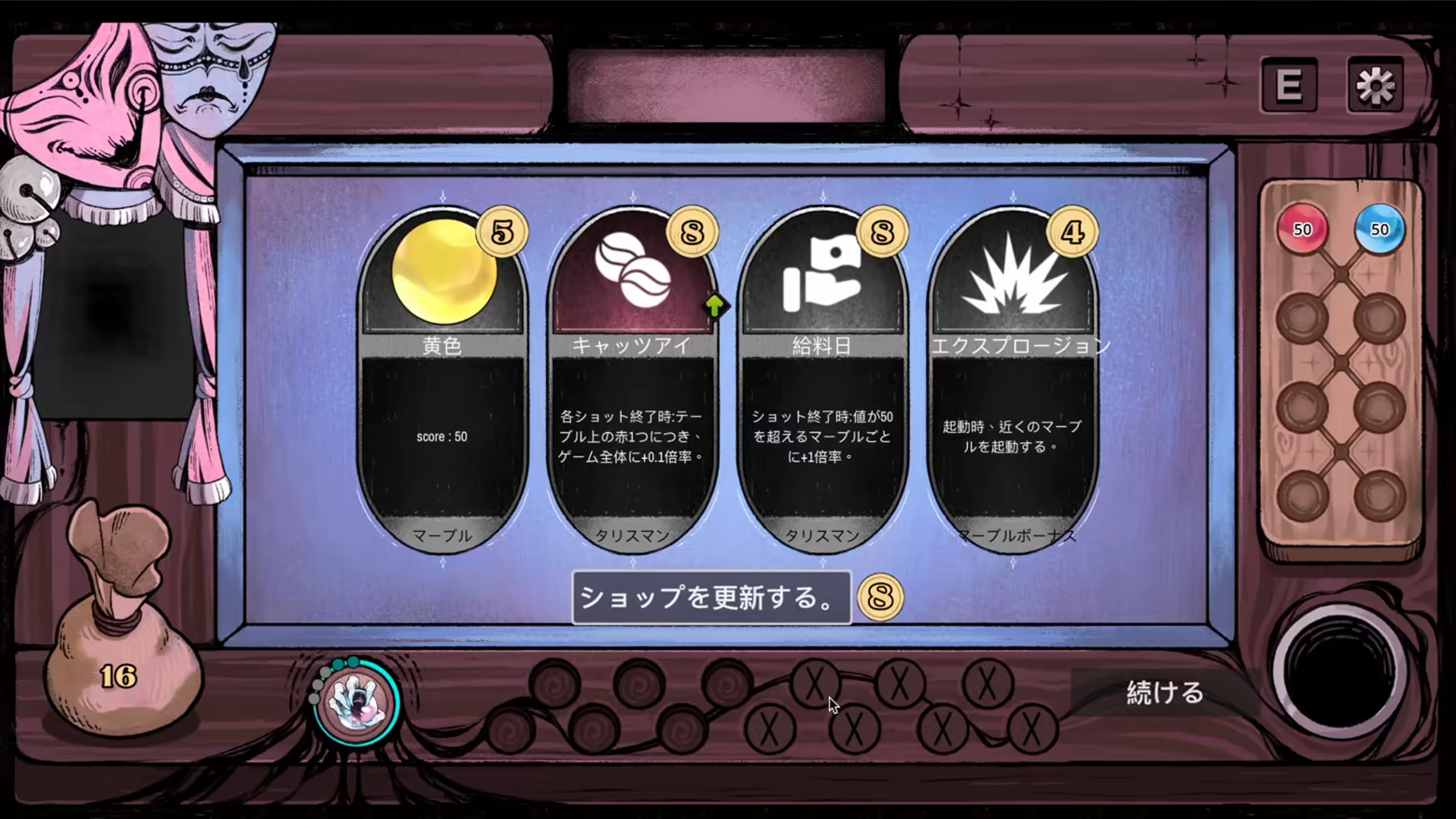 Carnaval Marbles は、フランス式ビリヤードに着想を得た戦術系ローグライクです。魔法のタリスマンとマーブルボーナスを組み合わせてルールを書き換え、思いがけないシナジーでスコアの限界に挑みましょう。