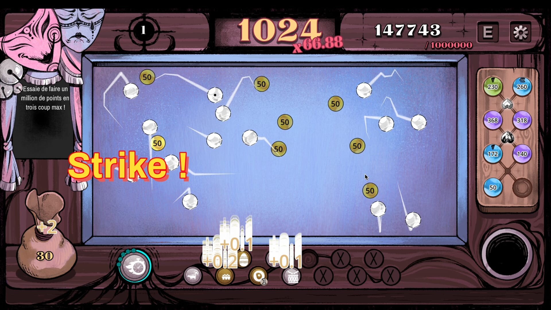 Carnaval Marbles est un roguelike tactique inspiré du billard français. Combinez des talismans magiques et des bonus de billes pour modifier les règles, créer des synergies inattendues pour repousser les limites du score.