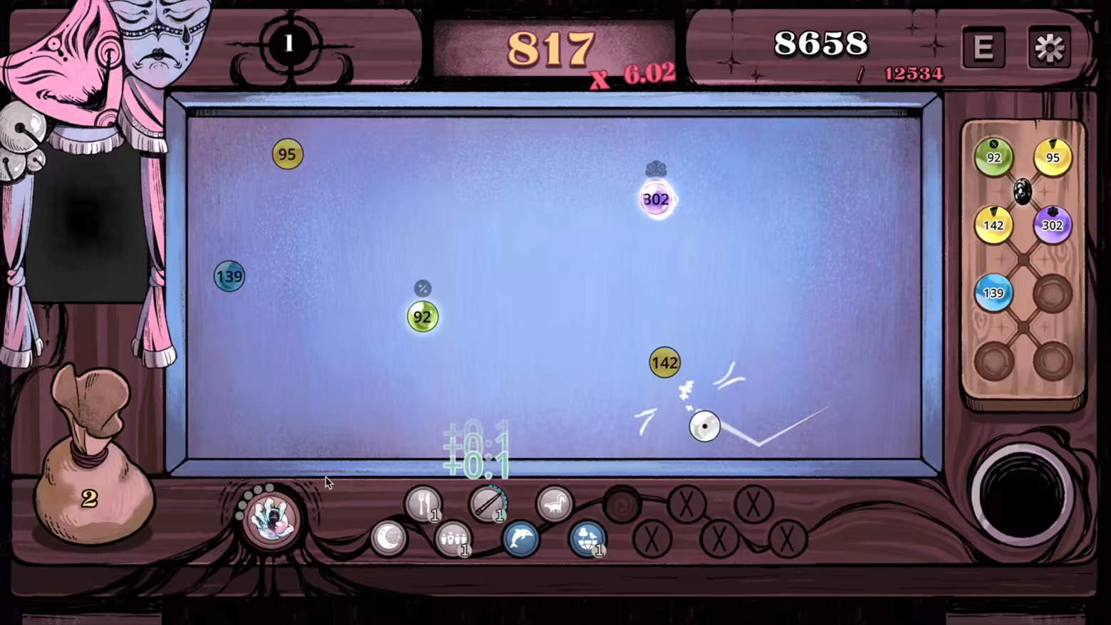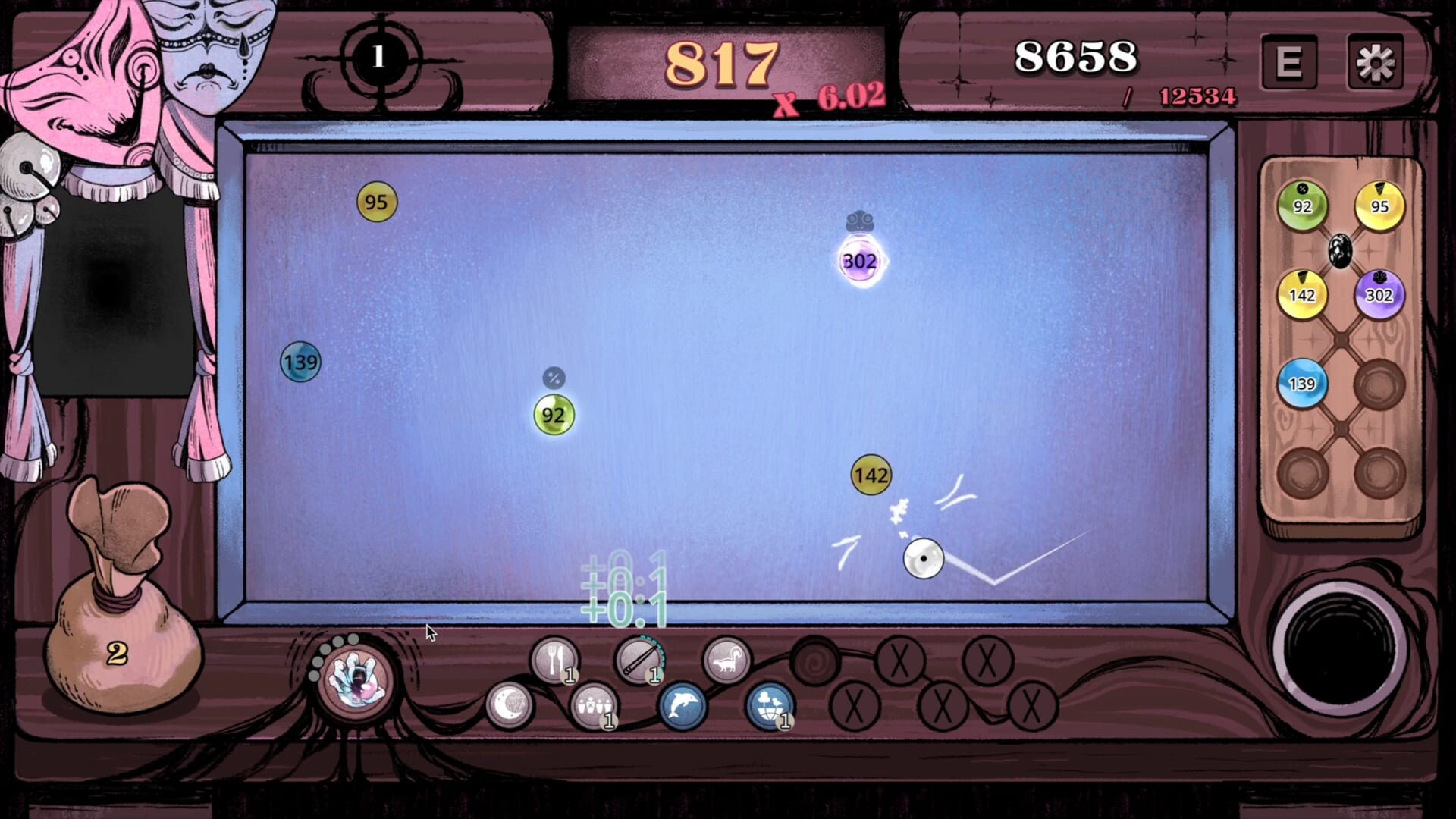 Carnaval Marbles funde um roguelike sistémico com o bilhar francês. Num mundo de dark fantasy carnavalesca, cada tacada conta: posicionamento, tabelas e as sinergias entre Talismãs, Bónus e Runas transformam uma simples partida numa verdadeira máquina combinatória. Nenhuma run é igual.