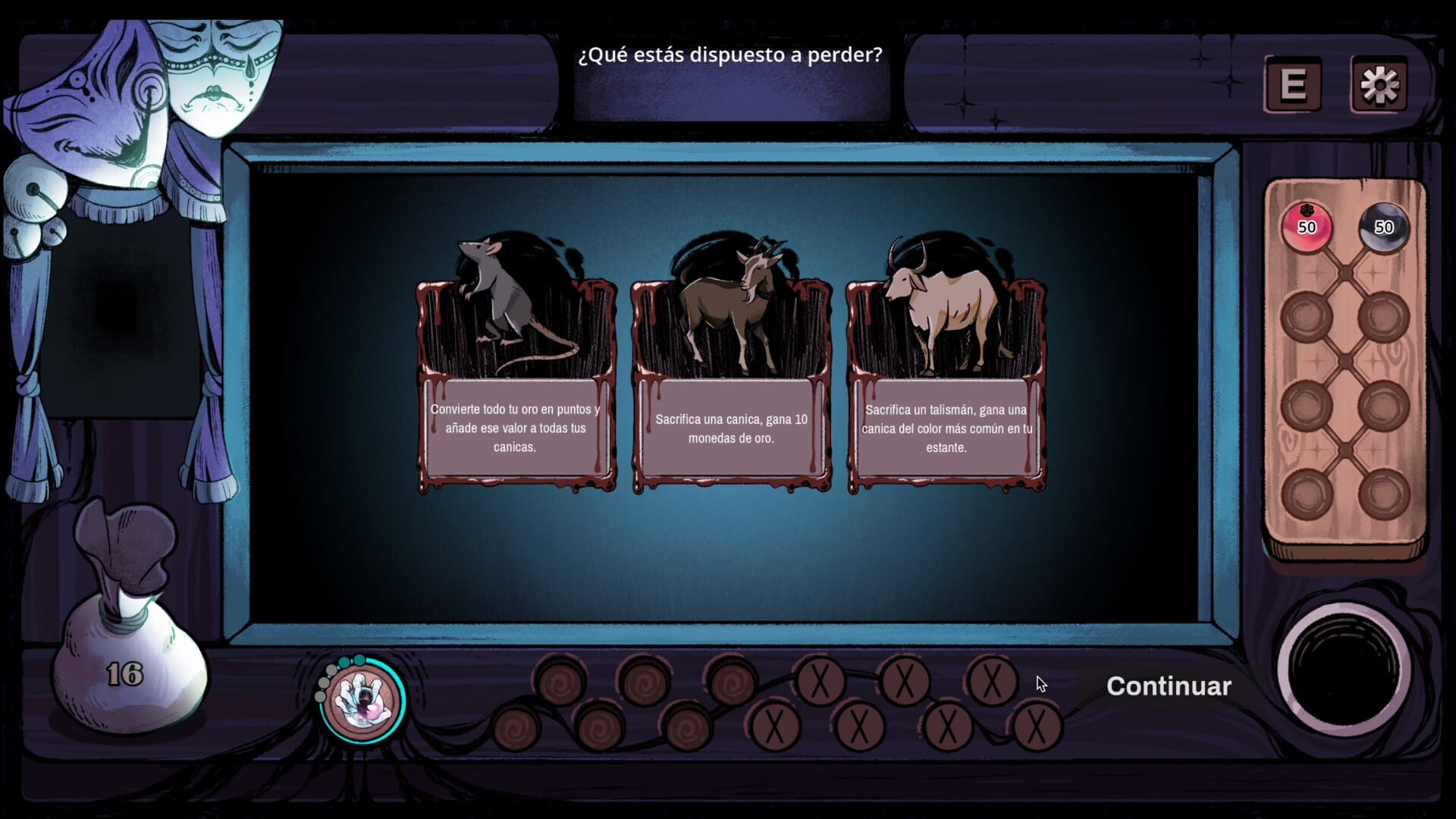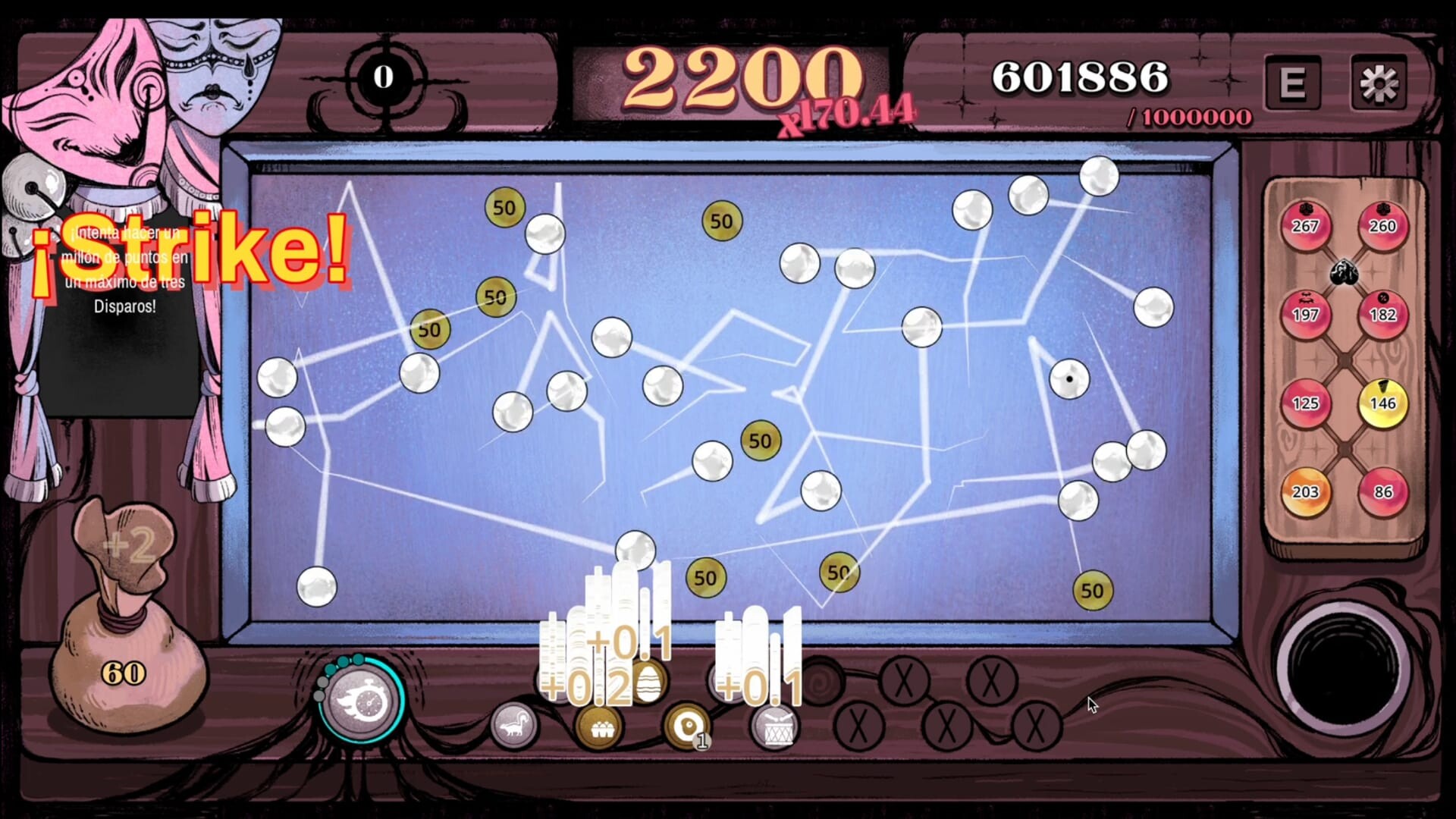 Carnaval Marbles fusiona un roguelike sistémico con el billar francés. En un mundo de dark fantasy carnavalesco, cada tiro cuenta: el posicionamiento, los rebotes y las sinergias entre tus Talimanes, Bonos de Canicas y Runas convierten una simple partida en una auténtica máquina combinatoria. No hay dos runs iguales.