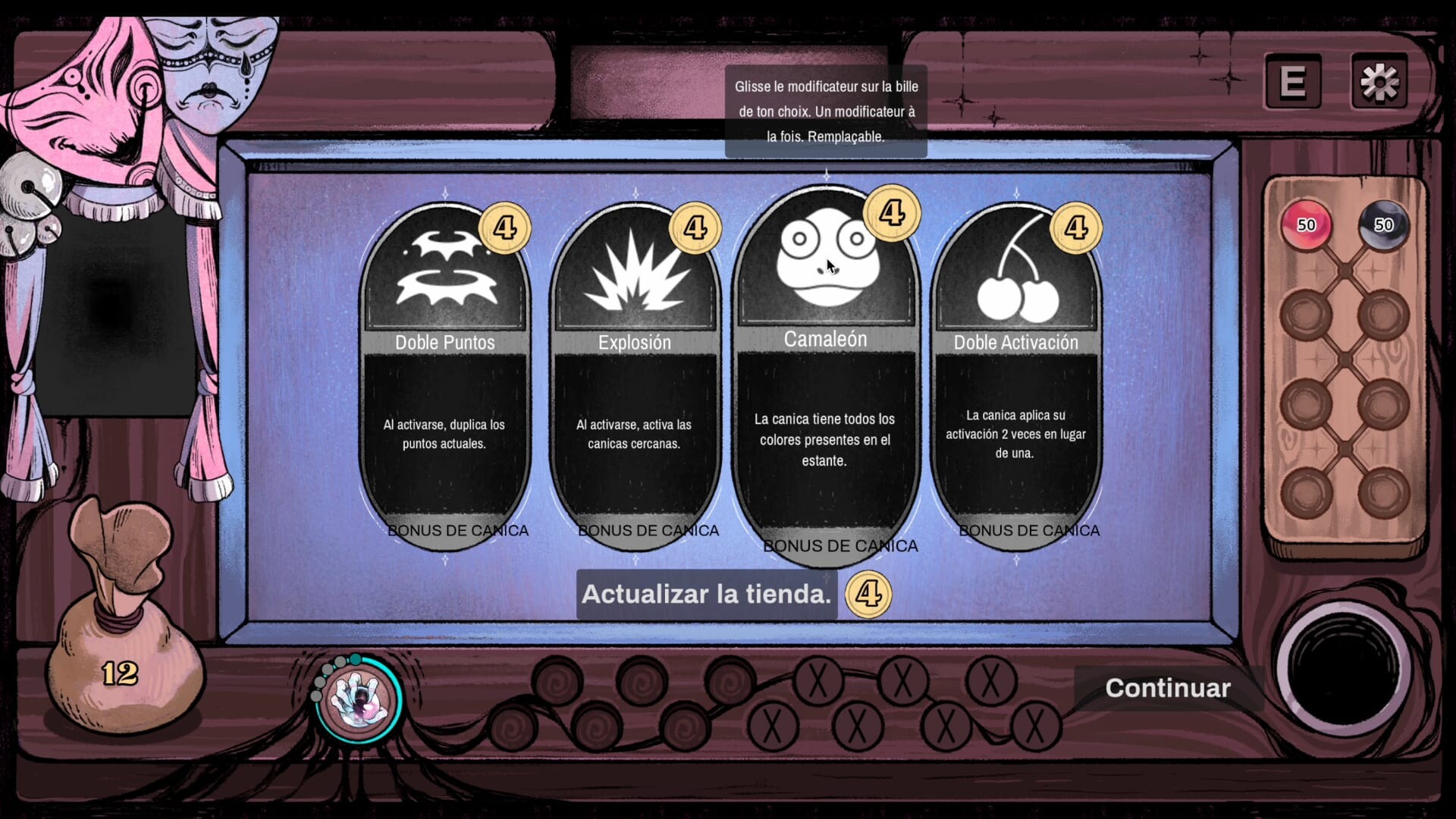 Carnaval Marbles es un roguelike táctico inspirado en el billar francés. Combina Talimanes mágicos y Bonos de Canicas para alterar las reglas, crear sinergias inesperadas y llevar tu marcador al límite.