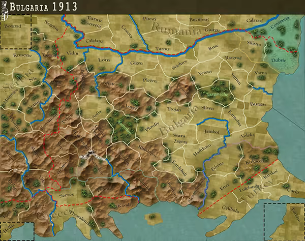 Bulgaria 1913 deals with the second Balkan war pitting the young and ambitious Kingdom of Bulgaria against its neighbors in order to preserve its conquests achieved in 1912 at the expense of the Ottoman Empire.