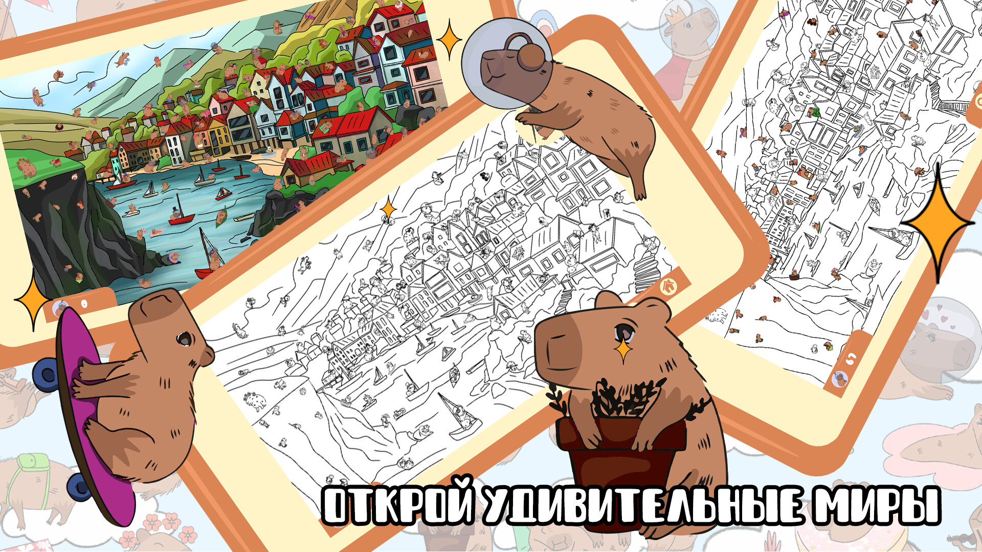Это игра в жанре «Поиск предметов» с картинками, нарисованными вручную. Под спокойную музыку найди 100 уникальных капибар в различных, красочных сеттингах. Найди, кликни, найди следующую и наслаждайся раскрашенной картинкой.