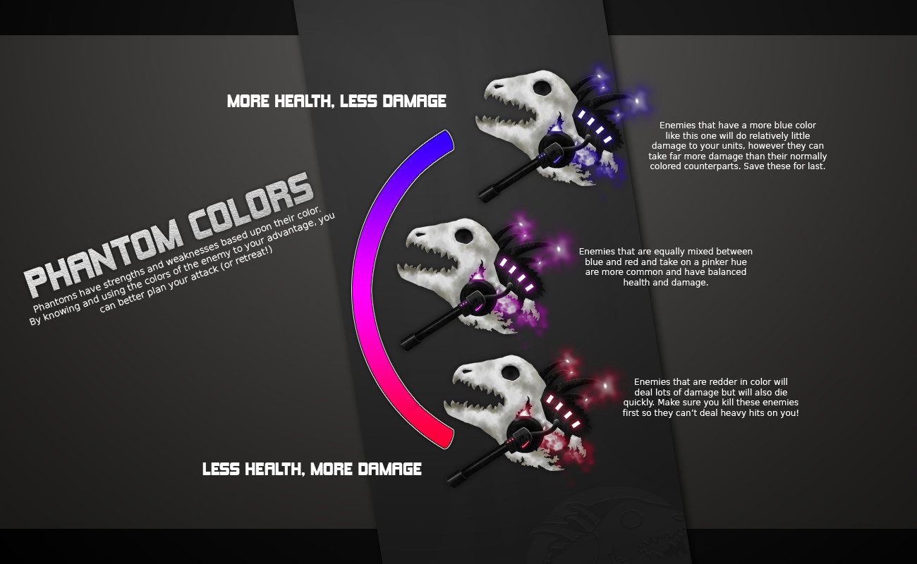 Don’t get too proud though – if you beat it too easily the game will know and will be sure to adjust the difficulty for next time. Game difficulty in Koya Rift is complex – it’s not a simple modification to the amount of health you have, and it isn't a simple easy-normal-hard scale. Difficulty is modeled as a precise measurement that expands near-infinitely in either direction in this game. Difficulty adjustments affect almost everything in game – from the reaction speed of the Phantoms, to the speed at which they grow and evolve, to the cost of your allies, the experience they need to level up, the accuracy, size, fire rate, and density of your energy weapons, the rate of health recovery, the effects of special weapons, the size of the levels you play on, the health and damage of your enemies, the speed and fragility of your allies, the cash value of killing an opponent, the swiftness and force of enemy raids, and even more. There are so many values that change, and when they do change, they change with such subtlety that you will not be able to pick out exactly why this next game seems like more of a challenge for you than last.