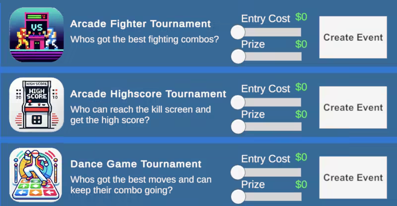 • Events (Arcade Tournaments)