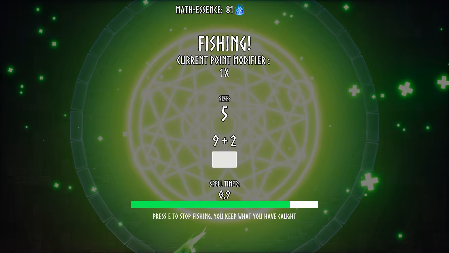 The player can fish from four different math realms to collect math essence, upgrade your spell and runes, unlock the Arcane Anglers Guild, challenge the guild members in four different math related challenges with different difficulties and earn achievements.