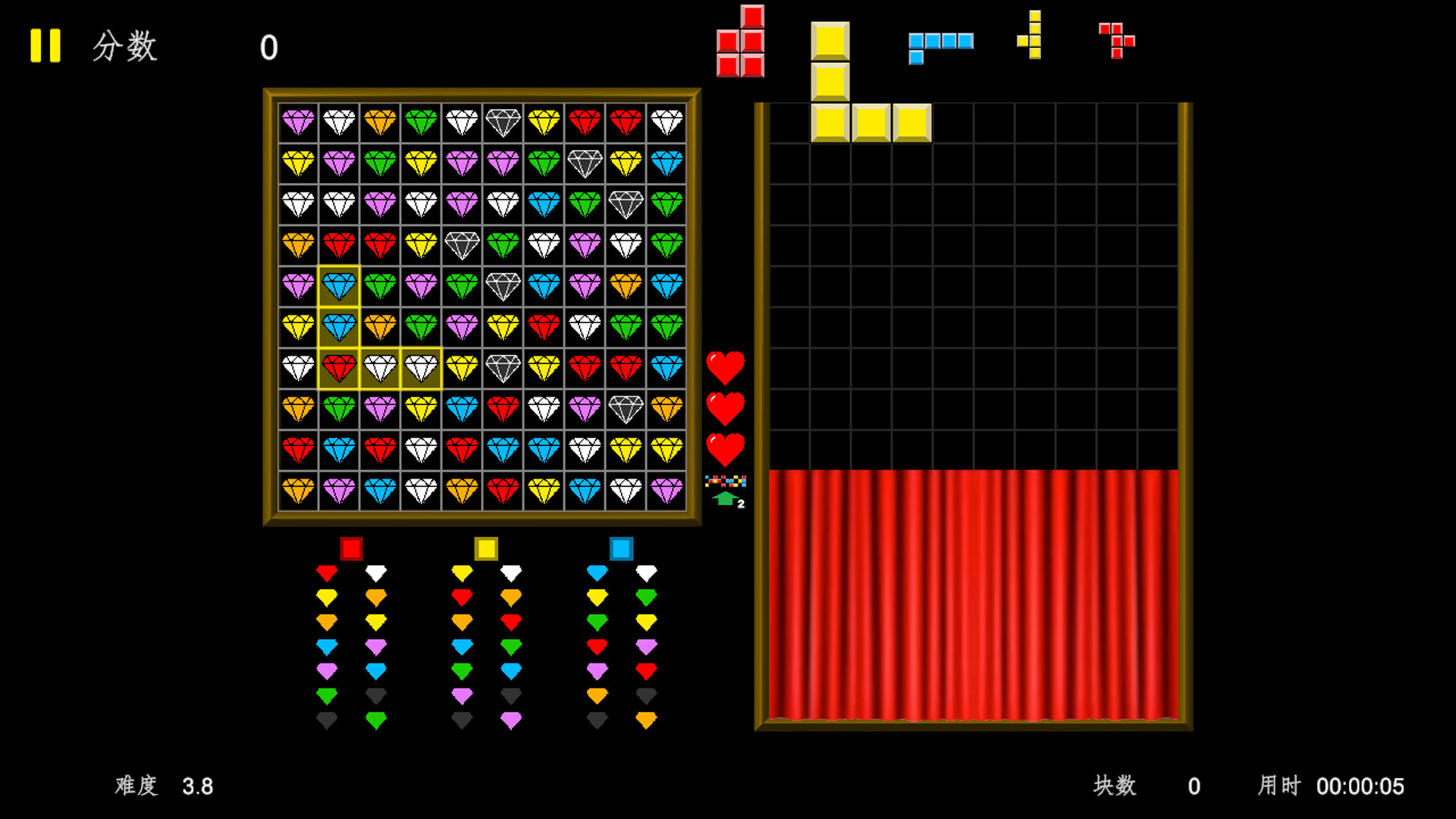 在安排右边俄罗斯方块的同时,需要兼顾左边的三消。