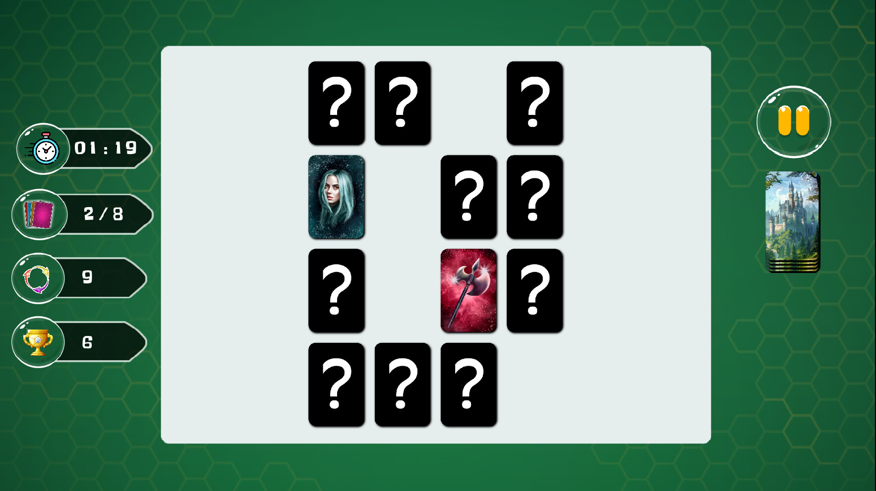 Fantasy Memory: A Relaxing Match Game invites you into a realm of calm yet captivating card matching. The mechanics are straightforward: flip cards, find matching pairs, and clear the board. Yet behind the simplicity lies a satisfying mental workout.