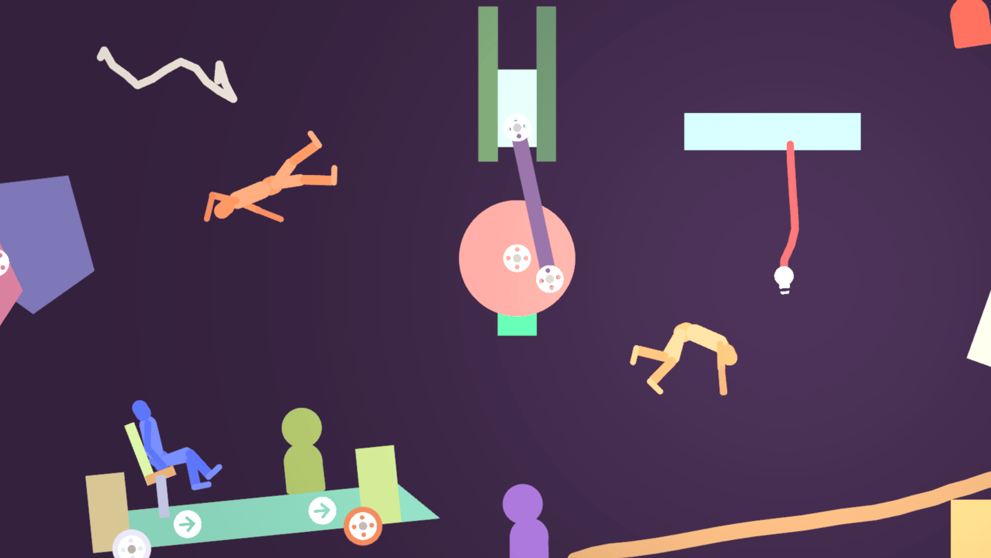 Simulo is a 2D physics sandbox game where you can do Anything*. Users can use a variety of in-game tools to build Whatever they could possibly imagine, from simple contraptions like cars to complex machinery. Or, you can just use it to mess around with ragdolls.