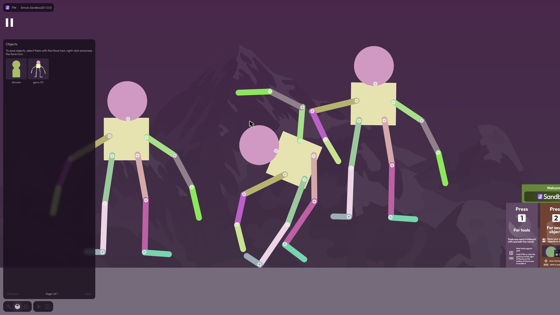 Once you open Simulo revolutionary 2D physics sandbox, you will find some of the things you can do include: