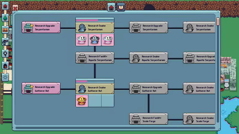 Každá budova může ubytovat různé druhy hadů a každý z nich produkuje jiné šupiny. Tyto šupiny můžeš použít k výstavbě nových budov, výrobě lepších nástrojů a vybavení nebo je prodat za zlato. Od hadů s rohy, přes hady na kolech až po ty s křídly – čeká tě spousta přátel, které si oblíbíš.