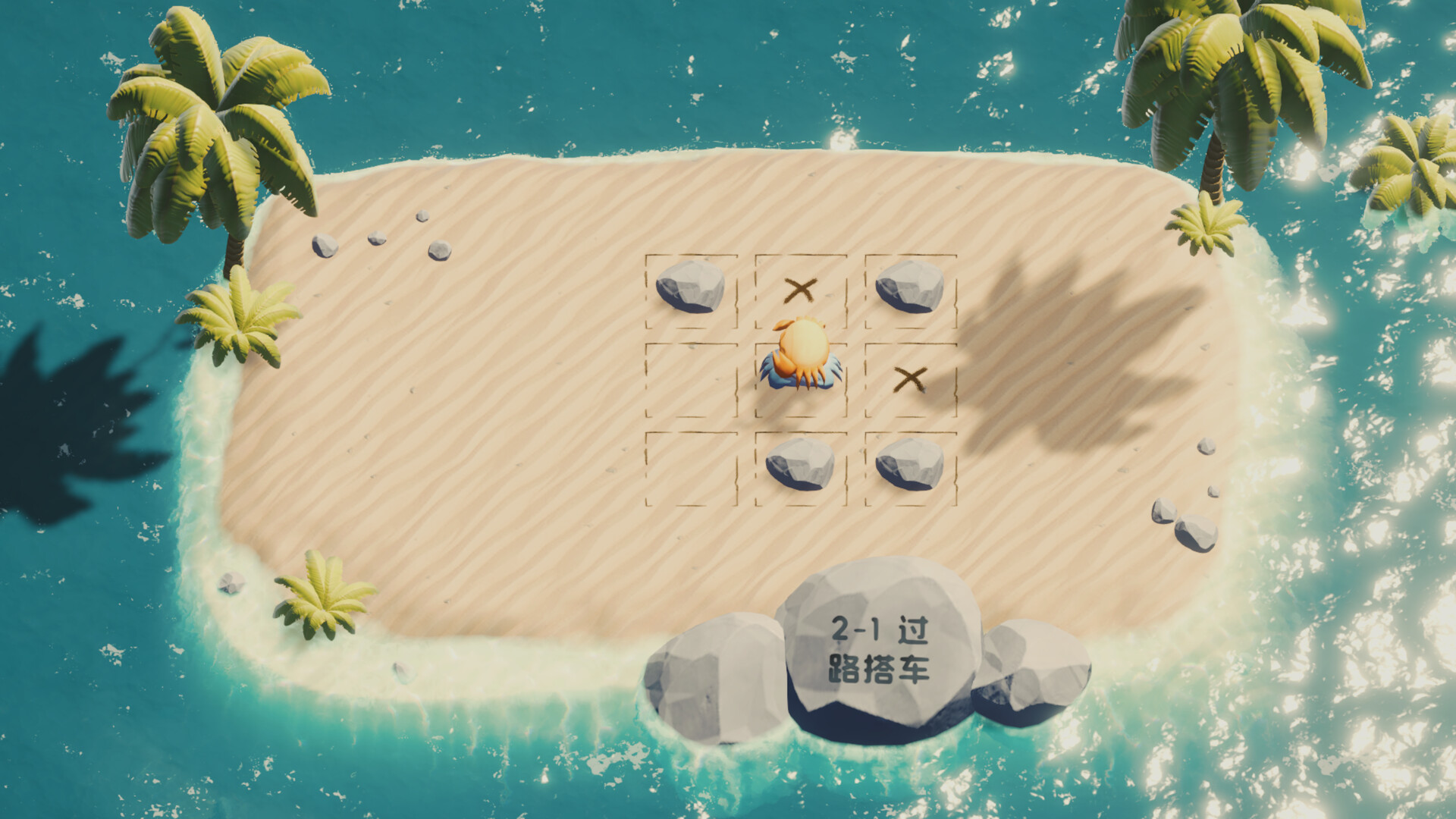 当方向不同的螃蟹相遇时,后来的螃蟹可以踩在其他螃蟹的身上,进而被下方的螃蟹带动着移动。另外,双层螃蟹可以在某些特定条件下推动前方的单层螃蟹。如何合理规划栖身处的分配,在避免横纵螃蟹拥挤践踏的同时相互配合达成目标,这是《横行纵队》谜题机制的核心。