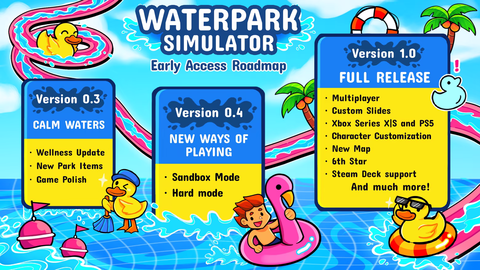 “We estimate that Waterpark Simulator will be in Early Access for approximately 9 to 12 months. This timeframe may evolve based on development progress and community feedback. Our focus during Early Access will be on improving systems, adding content, and making the overall experience as fun and polished as possible.”