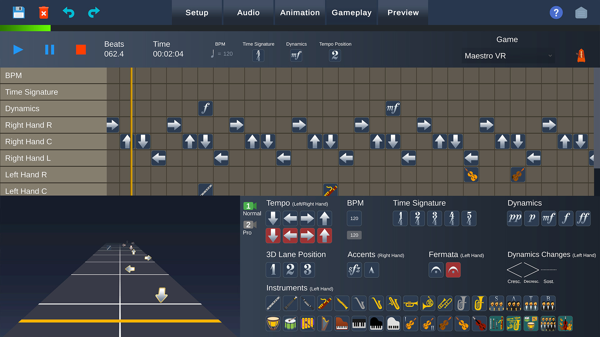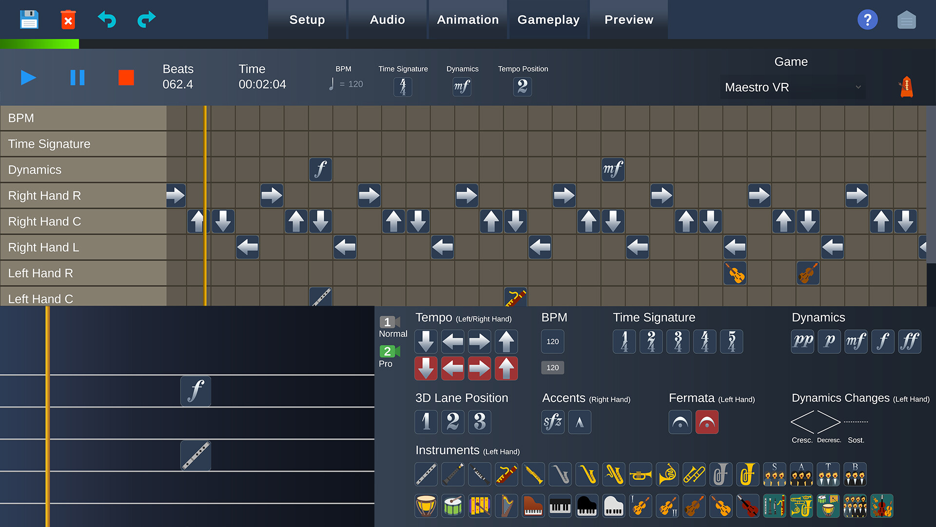 • Design Personalized Levels for Maestro VR: Create custom levels within Maestro VR. With an intuitive interface, drag and drop icons onto the lanes to design your own symphonic rhythm game.