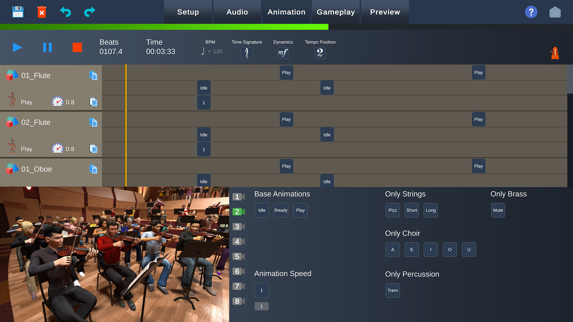 • Synchronize Animations with Your Music: Watch your virtual orchestra perform your compositions in real time, synchronizing the musicians' animations with your audio tracks.