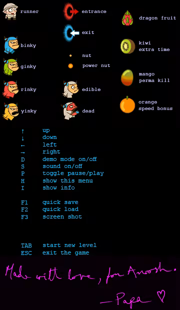 I couldn’t find one like he envisioned, so I built one, where there are monsters, and nuts, and power nuts, and fruits that give you special powers.