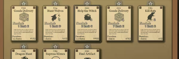 • Choose which quests to post and decide how to maximize their appeal to adventurers (marketing, quest type, etc.)