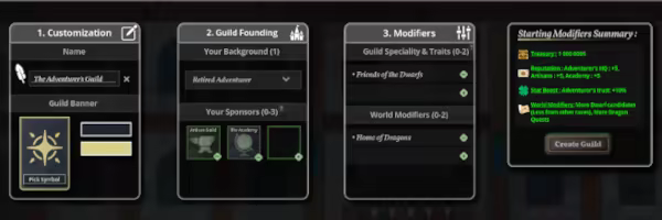 • Your guild, your way: the path to success is up to you! You can keep your business diverse and never master anything, or specialize in certain adventurers, quests, or factions at the risk of completely locking out other opportunities.