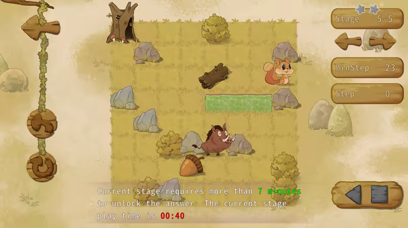 This is a push box game. Players will control a cute little squirrel to collect acorns to help it survive the cold winter.